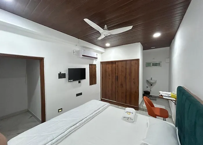 A daily vegetarian breakfast is served in the morning. Guests may find the restaurant Hotel Brundavan a 10-minute ride away.